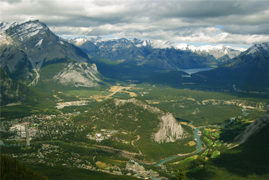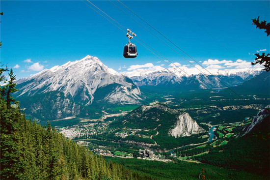 来到班夫,要做的第一件事就是乘坐班夫空中缆车(Banff Gondola),透过玻璃窗,随着缆车的升高,俯瞰坐落在六山怀抱之中遥远的班夫镇。大约8分钟后,就可以到达2450米高的硫磺山(Sulphur Mountain)山顶,在此可远眺群山峻岭,欣赏层峦叠翠、雪峰迭宕的壮丽山河。从观景台上眺望班夫盆地和落基山脉,景象清晰壮观,周围群山河川的美貌尽收眼底。