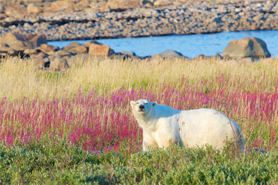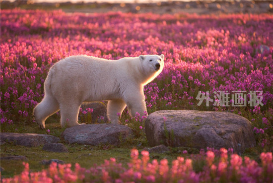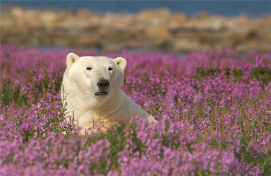 花丛中的北极熊,颠覆了人们对于它们只存在于冰天雪地之中的印象