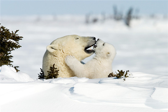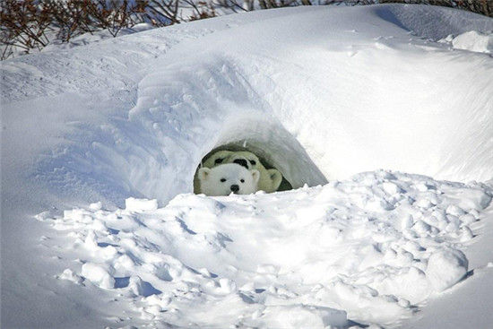公园里的哈德逊湾周围,雌性北极熊在这里建造了1200多个小窝,作为产崽之地