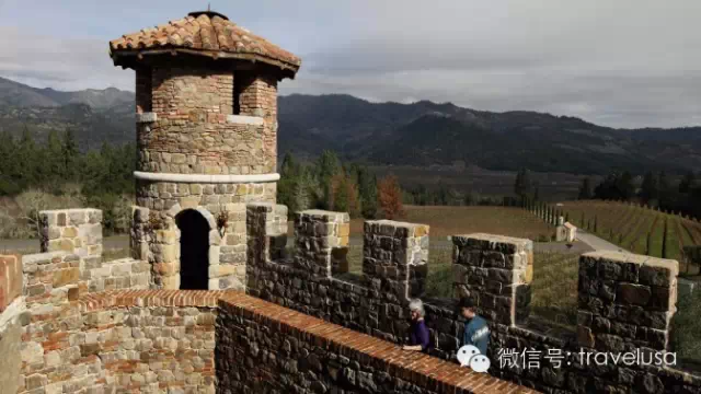 很多纳帕山谷的酒庄都可称真正的真正的城堡,这做带有护城河的托斯卡纳风格的古堡已建成超过14年,从1995年开始,建造它用的是中世纪的技术,包括手工凿刻的石头、手工锻造的铁钉和手工彩绘。它的主人-葡萄酒商人达里奥.萨蒂对葡萄酒相当着迷。参观者可以计划一个品酒旅行。