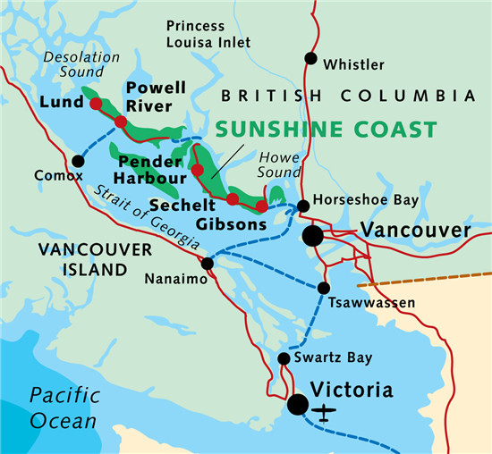 推荐理由:在通往阳光海岸的路上,乘坐渡轮是最好的穿越海峡的方法。从温哥华出发,开车从1号公路转入99号公路,到达马蹄湾(Horseshoe Bay),搭乘早班渡轮,大概需要40分钟到达兰德尔码头(Langdale)。之后如果还想接着坐船,先参观Lund,你可以开车沿着101号公路开车事项伯爵湾(Earls Cove),再搭乘渡轮前往Saltery Bay。