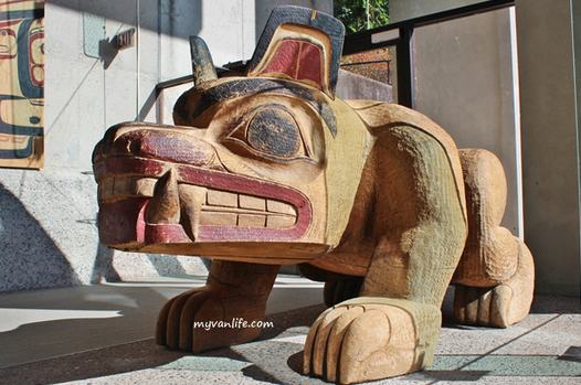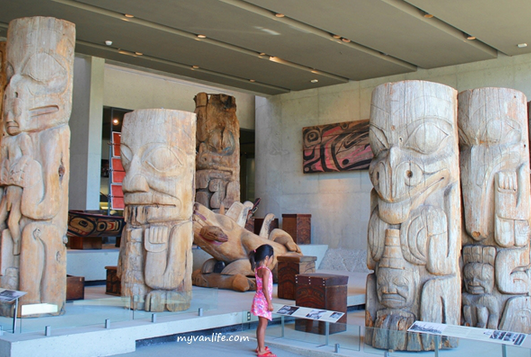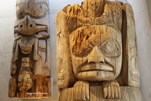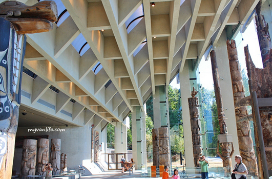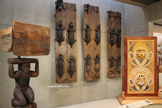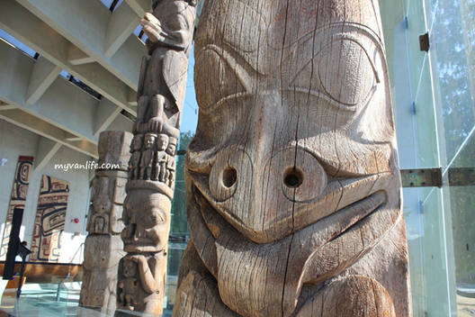 说到图腾柱数量和文化价值,温哥华人类学博物馆内(MOA)的图腾柱称冠加拿大,甚至北美大陆。位于卑诗大学校区内的MOA兼具观光和教学的功能:该校的美术、人类学、考古学、文物保护学和博物馆学的课程都在这里进行。馆内搜藏了38,000件全世界人种相关文物,以及535,000人类学的展品,西北岸第一民族部落、北极圈沿岸的因努特族以及现代原住民的艺术创作为大宗。