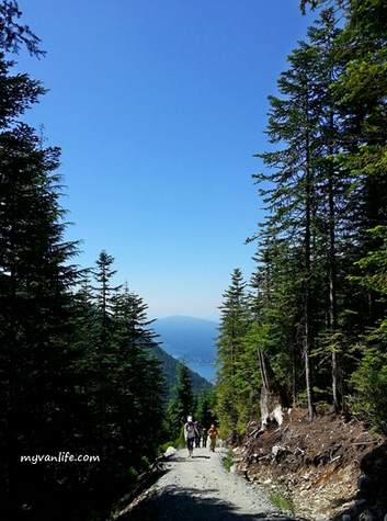 黄柏山滑雪场一共有八条步道,难度长短不一。海马老爸走访了豪湾步道(Howe Sound Crest Trail),一览滑雪场夏日的样貌。此步道至著名景点鲍温展望台全长只有2.5公里,海拔高度100公尺,属于入门阶简易的路线。