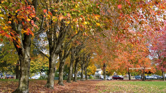 有人则认为在火树下最浪漫。一步步踩在落叶成毯的小径,红叶在耳际摇曳;一举头,那高耸的红和黄和橘铺天盖地,是哪个艺术学院的学生打翻了调色盘呐?