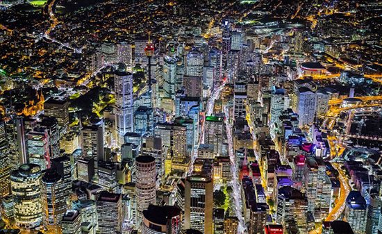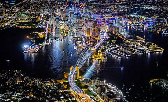 摄影师朗福瑞德乘坐直升机拍摄的悉尼夜景