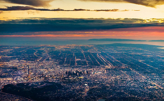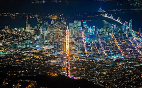 朗福瑞德拍摄的美国旧金山夜景,高速路、摩天大厦清晰可见