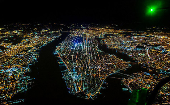 摄影师将新泽西(左)、曼哈顿(中)和布鲁克林(右)的夜景收入了一张照片中