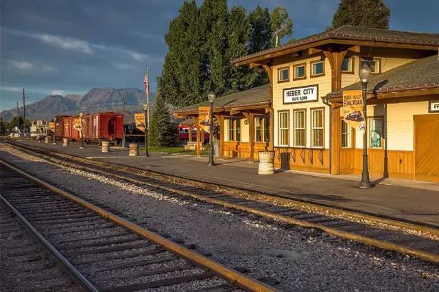 在希伯城的复古火车站,登上一辆火车,行驶在历史悠久的希伯山谷老铁路(Heber Valley Historic Railroad),体验穿越峡谷的感觉,全长25公里,只要3小时。