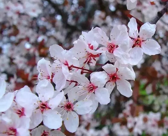 第一波的樱花品种以黑叶李花、紫叶李花、惠空樱 (Whitecomb) 和褒奖樱(Accolade)为主。