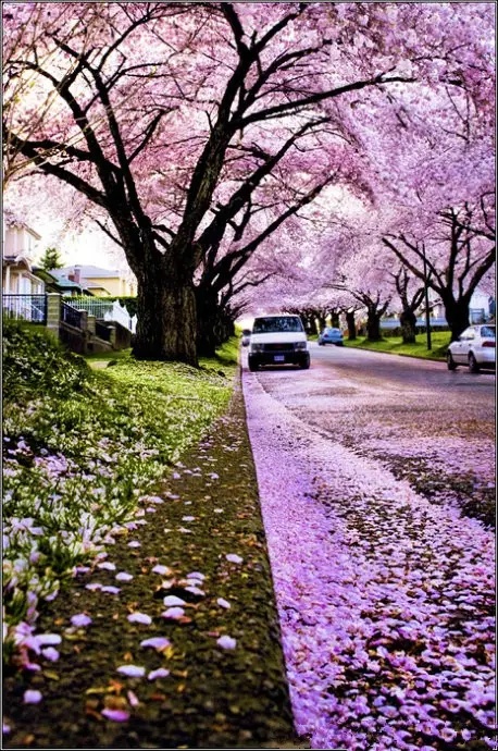 春天来了,白色的、黄色的以及各种深浅不一的粉红樱花,轰轰烈烈地占领了温哥华的大街小巷,白天的樱花娇艳动人,夜晚的樱花如梦如幻,如果你在这个季节遇见她,就一定不会忘记。