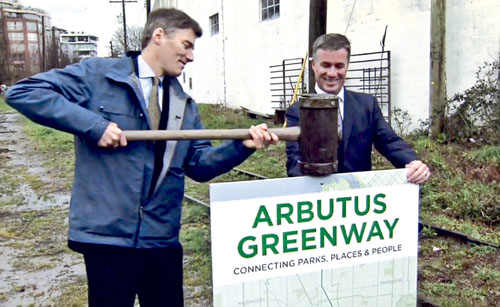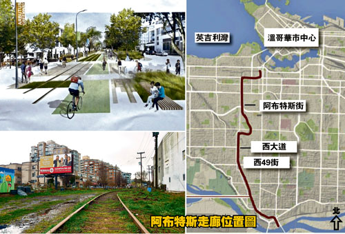 温哥华市政府与加拿大太平洋铁路公司(CP Rail)就温市阿布特斯走廊(Arbutus Corridor)的争拗,终获得解决。温市府周一宣布以5,500万元购入该走廊土地,并会清拆路轨,把该走廊改变为「阿布特斯绿色走廊」(Arbutus Greenway)。