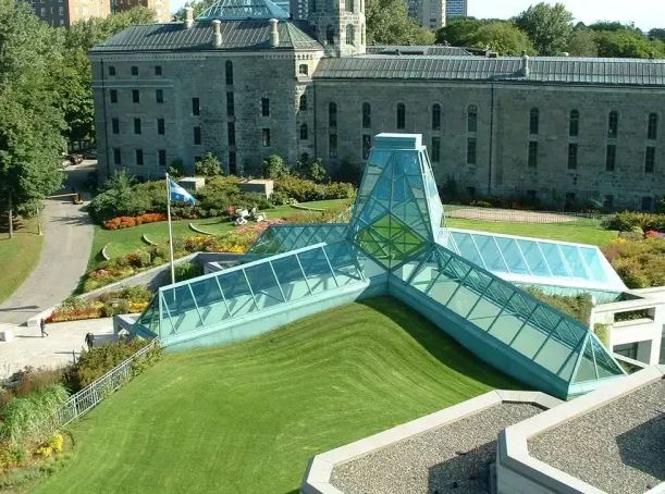 该博物馆由三座不同风格的建筑有机组合在一起。整座建筑的中间是一座有着现代风格的玻璃屋顶建筑,它巧妙的将东边一座建于19世纪的老博物馆与西边由监狱改造而成的新馆联系在一起,给人的感觉既富有浓郁的现代气息,又保留了19世纪建筑的原有风格。同学们如果在魁北克城游览的话,不妨去感受一下吧!