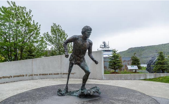 加拿大的英雄泰瑞·福克斯(Terry Fox),他身患骨癌被截肢,却在1980年,开始了为癌症筹款,横穿加拿大的长跑,圣约翰斯的这个地点就是他出发的地方。他跑了143天,共5373公里。最后,由于癌症复发,不得不在安省境内的雷湾停止。他去世后,加拿大每年都举办活动纪念他。