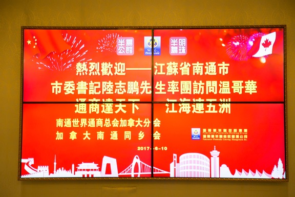 [加拿大乐活网 lahoo.ca 6月10日电] 6月10日南通世界通商总会加拿大分会于温哥华半岛明珠(308-470 SW Marine Dr, Vancouver)成功举办揭牌仪式。江苏省南通南通市委书记陆志鹏亲自为加拿大分会授牌,分会的建立将充分发挥好桥梁作用,为加快南通对外经济发展、维护海外南通籍人员权益、提升南通国际形象作出贡献。当晚江苏省南通市政府代表与温哥华侨团代表、学者教授及商界精英畅谈南通发展历程及远景展望,并就如何实施国家”一带一路”战略进行开放性对话和深入讨论。