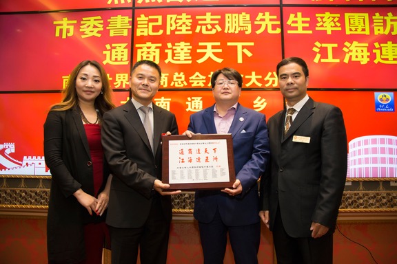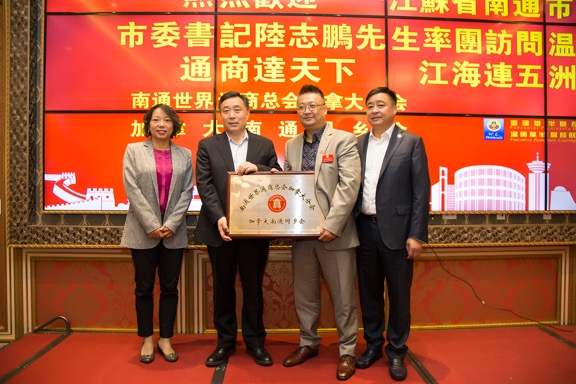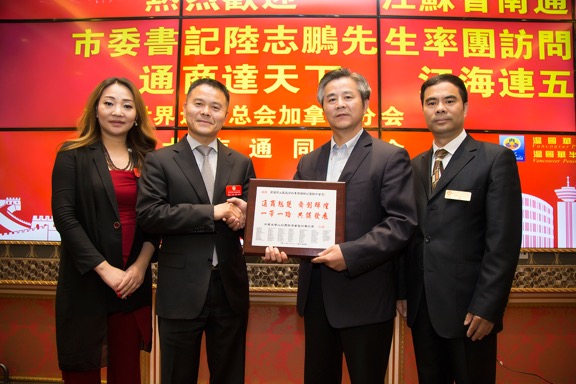 陆志鹏书记为南通世界通商总会加拿大分会授牌