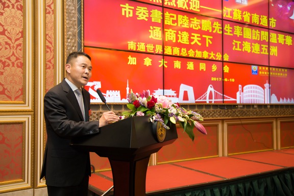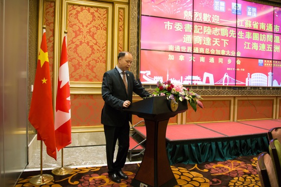 陆志鹏书记代表南通市委市政府感谢领事馆一直以来对通商的关心和支持,感谢温哥华及加拿大各级政府对南通老乡的生活给予的照顾。