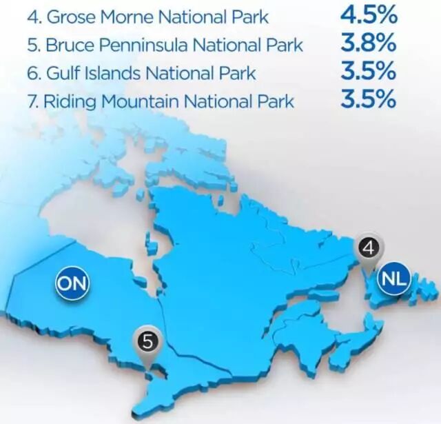根据粗略的统计,班芙(Banff)和贾斯珀(Jasper)国家公园发生最多违规行为,占了全国所有事件的1/3。