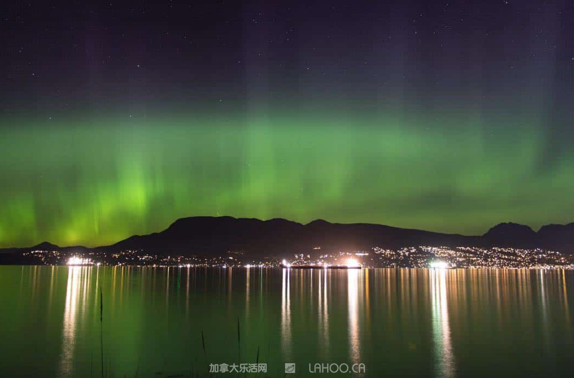 根据The Weather Network的最新报道,3月17日星期六晚上和3月18日星期日晚上,如果天气晴朗无云,那么整个大温地区都可以直接观测到强烈的北极光。