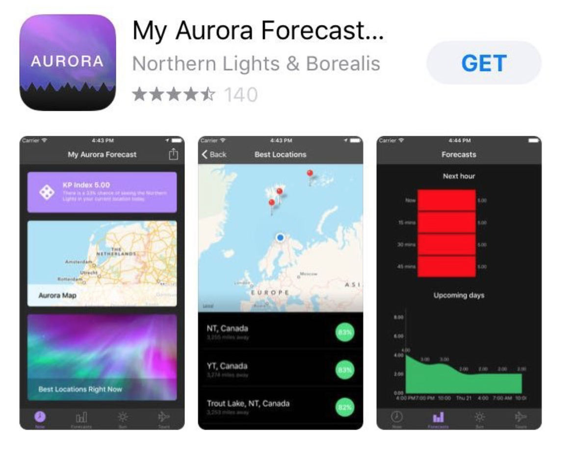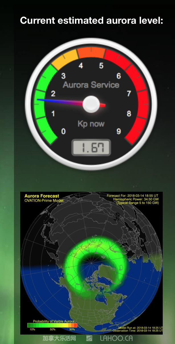 另一个是名字叫做My Aurora Forecast 的观测App,可以随时提醒观测者极光的爆发情况。