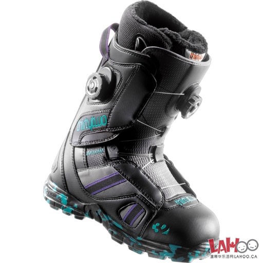 最后一种是旋转式鞋带系统(boa system)(下图),这种系统比上述两种更为简单,方便,即便戴着手套也容易操作。但是最后两种的缺点也很明显,就是一旦鞋带系统的某一个环节断掉或损坏,意味着一天的滑雪就结束了。根据自身需要来选择,男女款都有上述所提到的系统。