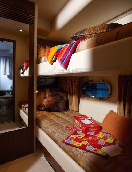 这艘名为“战舰108”的限量版游艇,其豪华程度类似007系列电影中的《皇家赌场》詹姆斯·邦德的游艇。为突出游艇的尊贵,顶层区域特别设计了运动飞桥,配以吧台和宽敞的沙发区,前部甲板还配以按摩浴缸和超大的日光浴区域。除此之外,船公司还提供4名专业水手,为船东驾驶游艇以及提供专业养护的服务。