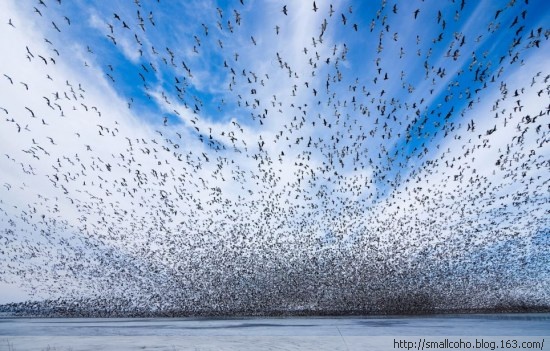 更要命的是城市边缘,保留的猎区都很小,往往是几轮枪声以后,雪雁就不往里面飞了,可以明显看到雁群绕着走,动物的智力实在也不能小觑。好不容易有飞进来的,还要天气配合才行,如果是晴天,雪雁飞行高度是远远超过霰弹枪区区50码射程的。