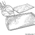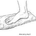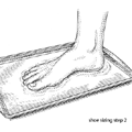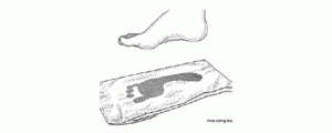 脚底湿润后将脚踩在一张空白的硬板纸上
