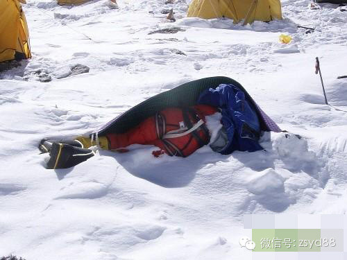 死亡还往往发生在攀登者的一个“小憩”当中。他们太累了,想停下来休息一会儿,等体力恢复了再继续攀登,然后就再也醒不来了。