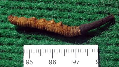 另据称,每年五月中下旬,当冰山上的冬雪开始融化,气候转暖的时候,幼虫破土而出,开始活动,在山上的腐殖质中爬行,待头向上爬至虫体直立时,寄生在虫头顶的菌孢开始生长,菌孢开始长时虫体即死,菌孢把虫体做为养料,生长迅速,虫体一般为四至五厘米,菌孢一天之内即可长至虫体的长度,这时的虫草称为“头草”,质量最好;第二天菌孢长至虫体的两倍左右,称为“二草”质量次之;三天以上的菌孢疯长,采之无用。由此看来,真正的虫草得来如此讲究,那么,市面上的真正虫草有几根?