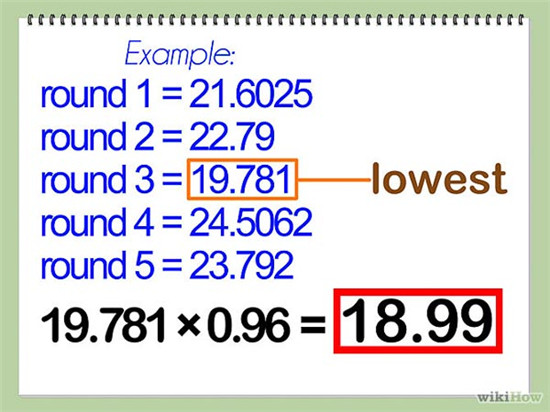 5 对每个分值重复上面的计算过程 从得到的一组结果里面找到最小的差分值,将其乘以0.96,得到的就是你的差点。如果你采用了超过10轮的分值,就找最小的3-5个差分值取平均值。如果采用了20轮的分值,就找最小的10个差分值取平均。