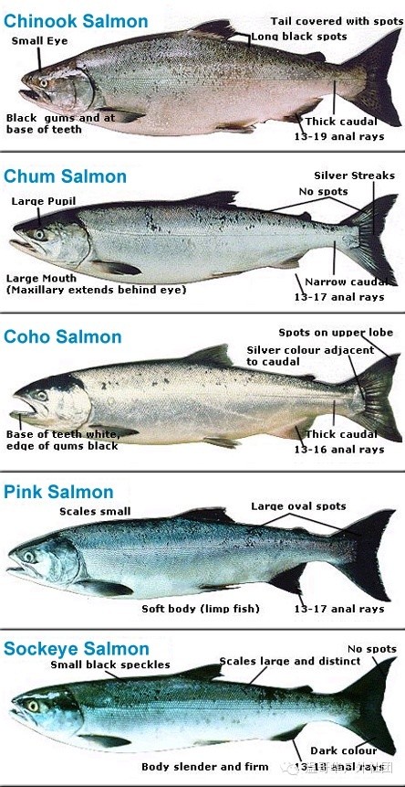 1、王鲑(Chinook Salmon,又名Spring、King、Tyee、Blackmouth)