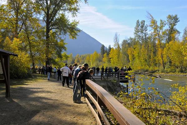 在卑诗看三文鱼回流,最著名的景点当属亚当斯河(Adams River)、威化溪(Weaver Creek)及黄金溪(Goldenstream)。此外,大温附近还有如卡皮兰诺三文鱼养殖场(Capilano Salmon Hatchey)、地狱门观光缆车(Hell’s Gate Airtram)等景点,卑诗旅游局也针对这些景点整理出一些相关资料,可供大家参考。