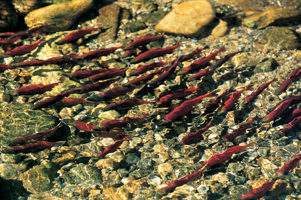 金秋来临,枫叶开始渐渐变色,翠绿的叶片上增添了一抹亮红。此时在卑诗许多江河溪流中,澄清的水底也有一抹的亮红出现了,这就是著名的三文鱼回流开始了。更加让人感到兴奋的是,观看三文鱼回流的地方,也无一例外是野外赏枫的好去处,因此,你完全可以在一天之内,赏枫、看鲑两不误。