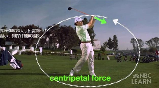 向心力是让物体按照弧线运动的作用力。根据向心力的公式,向心力的大小与运动的弧线轨迹大小成反比。运用到挥杆过程中,当挥杆的轨迹越大,用于维持球杆旋转所需要的向心力就越小,从而提升球杆的运动速度,让小球飞得更远。