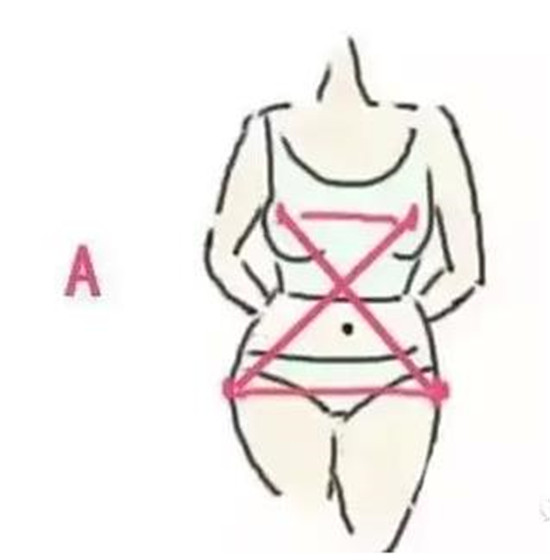 ②【A型身材】又称梨形身材也有称正三角身材,这是目前每天蹲办公室OL的常见身材,【一般下半身比较丰满,即臀宽大腿粗,基本指腹部、臀、大腿脂肪较多的女性】弱弱的说据说梨形身材有助于预防新陈代谢疾病,更易长寿。