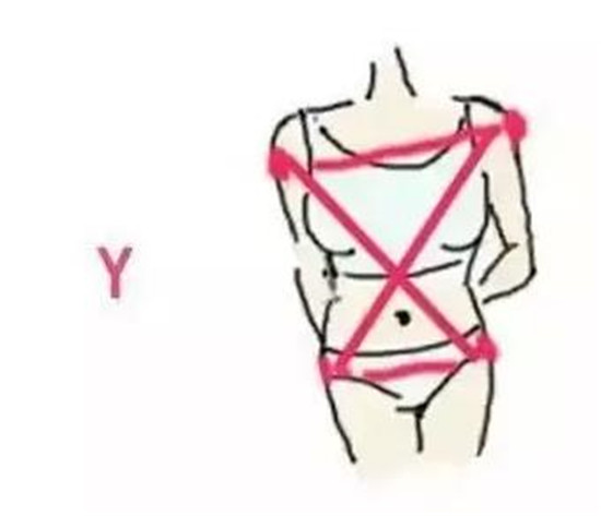 ③【Y型身材】Y形体型与A形体型相反,与纤瘦的下半身相比,上半身显得过于臃肿,容易产生头重脚轻的感觉,【肩膀过宽、胸部丰满或厚重的拜拜肉,是主要困扰,胯窄,下肢修长纤细】是基本特征哦。