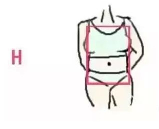 ⑥【H型身材】很多地方称之为矩形身材,上中下等宽,更加介于X和O之间,H形体型特点:【胸部、腰部、臀部围度差较小】缺乏S感的韵味,Emily觉得I型可以说属于H的一小部分哦~但是因为穿搭差异不小所以后面要区分开来说啦~
