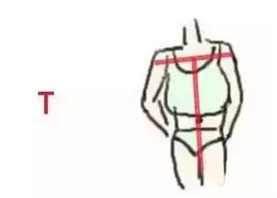 ⑦【T型身材】为什么还要特别分出一个T型身材,T形身材通常呈现I型身材的【平胸无腰窄臀的性质,但是特点在于肩宽】Emily特别提醒一般正常身材的mm肩宽在36-39居多哦~。