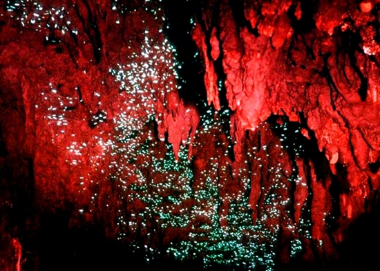 ▶怀托摩萤火虫洞(Waitomo Cave):也称萤火虫洞,位于新西兰的怀卡托小镇,因其地下溶洞现象而闻名。怀托摩的名称来自wai(水)和tomo(孔)的组合。这个地区数百个洞穴都是由因地下溪流冲积石灰岩而成的,洞穴内遍布惊人。