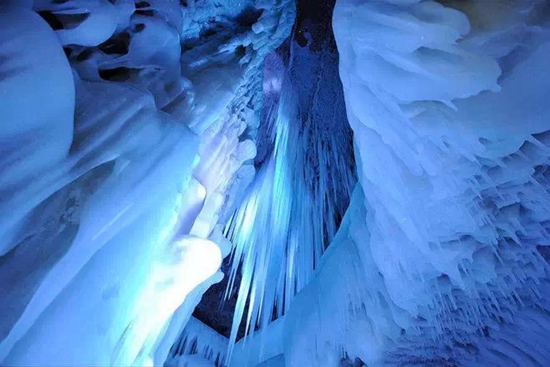 ▶万年冰洞国家地质公园:位于山西宁武县城西,形成于新生代第四纪冰川期,距今已有300万年的历史。它的奇特在于以本地洞外的气候条件论,根本构不成结冰的环境,而洞内一年四季冰柱不化,愈往深处冰愈厚。它是中国迄今发现的最大的冰洞,也是世界上迄今永久冻土层以外发现的罕见的大冰洞。冰洞内,晶莹剔透的冰笋、冰柱、冰瀑、冰葡萄、冰钟乳分布于各层空间,在五彩灯光的照射下呈现出七彩梦幻景。