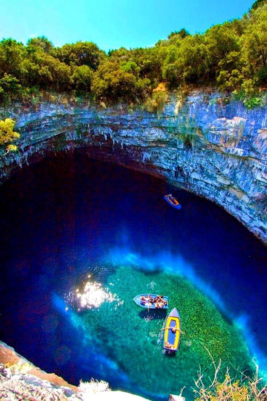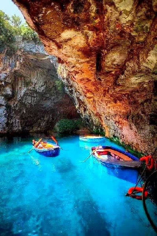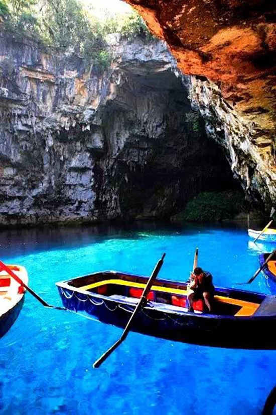 ▶梅丽萨尼洞(melissanicave): 希腊语中意为“女神的洞穴”,位于希腊凯法利尼亚岛东南岸,被重重森林包围。她于1951年被科学家发现,1963年首次向公众开放。在正午阳光的照射下,洞穴会反射出幽幽的蓝色光芒,在当地的传说中,这是希腊女神的庇佑,将给每一位在此游泳者带来幸运。