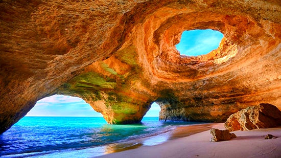 ▶阿尔加维洞穴(Algarve caves):位于葡萄牙最南的一个大区,它是历史省份之一。在历史上,曾经与葡萄牙其他土地和巴西一起组成葡萄牙-巴西-阿尔加维联合王国。阿尔加维海滩也是世界上最好的海滩之一。类型众多,如隐蔽海滩,家庭海滩,有的海滩海水很平静,是水上运动的理想场所。无论你选择哪一种,都足以让你尽兴。