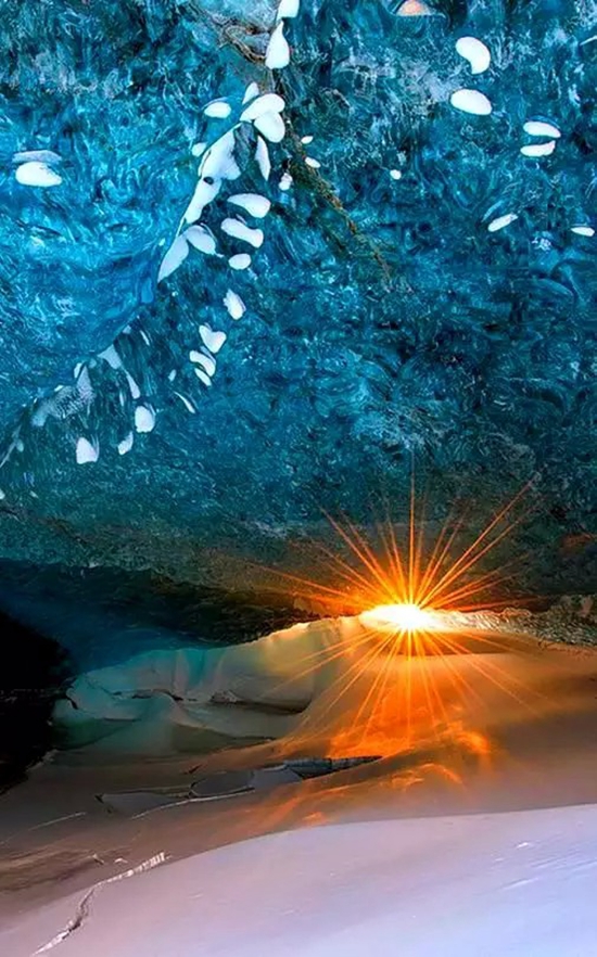 ▶瓦特纳冰川冰洞(Vatnajökull Ice Caves):欧洲最大的冰川,世界排名第三,仅次于南极冰川和格陵兰冰川。位于冰岛东南部,是冰岛面积最大的国家公园及自然保护区。该公园集冰川,火山,峡谷,森林,瀑布为一体,景色壮观。冰岛的冰洞隐藏在冰岛最大的冰川——瓦特纳冰原之下,冰洞的外观乍看之下与一般的岩石洞穴无异,但走进去,将会觉得彷佛走入神秘的冰之国,任何人都会被它那冰冷却绚丽、神秘又迷幻的壮丽绝景给震慑到忘记呼吸。