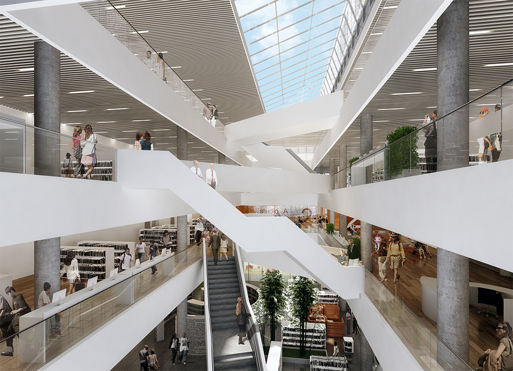 加拿大乐活网(lahoo.ca) 了解到这座图书馆坐落在繁华的市中心,在夜晚灯光的照应下,熠熠生辉。这座图书馆由四个巨大的玻璃箱组件形成,建筑师运用了堆积,扭转,悬挂这三种设计理念创造了一个令人过目不忘的经典。