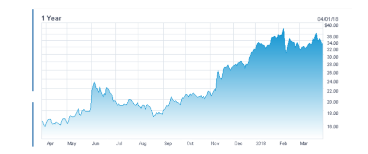 “华人消费”的能量已在全球获得验证,进而带动了公司的股票走势。2017年,加拿大鹅(GOOS)的销售额同比增长38.8%,在此超强业绩的带动下,公司股票在年内实现翻番的涨幅(附图),其中华人消费者的贡献力不可小觑。