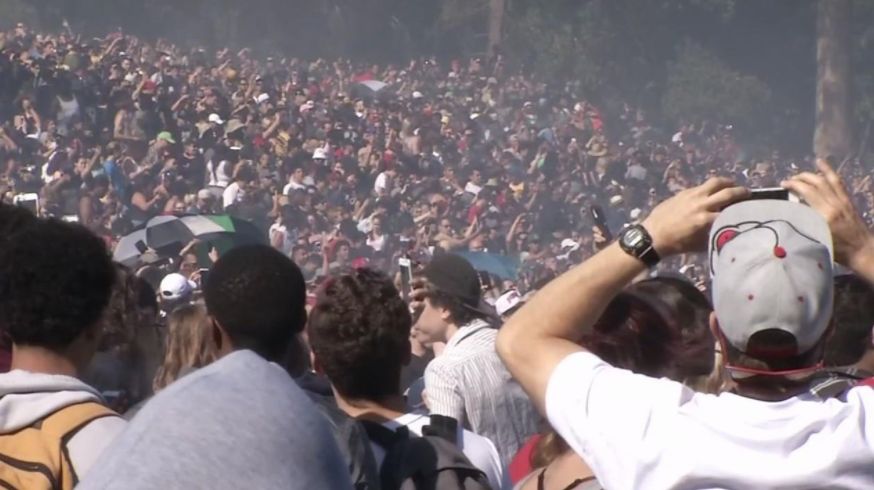 但警察蜀黍们就在周围巡逻,却没有干预这群大麻族们欢乐呛吸的行为,因为这是一年一度“4月20日下午4时20分,420快乐!”的大麻节。