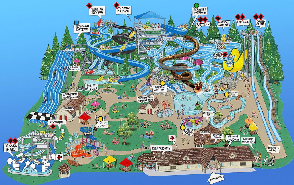 作为BC省最大的水上乐园,这里拥有6个类型的滑道,十好几种水上设施。