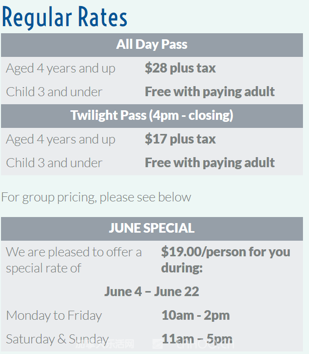 除此之外,还有温哥华到公园的免费公车,周边也有很多酒店,并且乐园还和Tsawwassen奥特莱斯有合作优惠项目!是不是很诱人!
