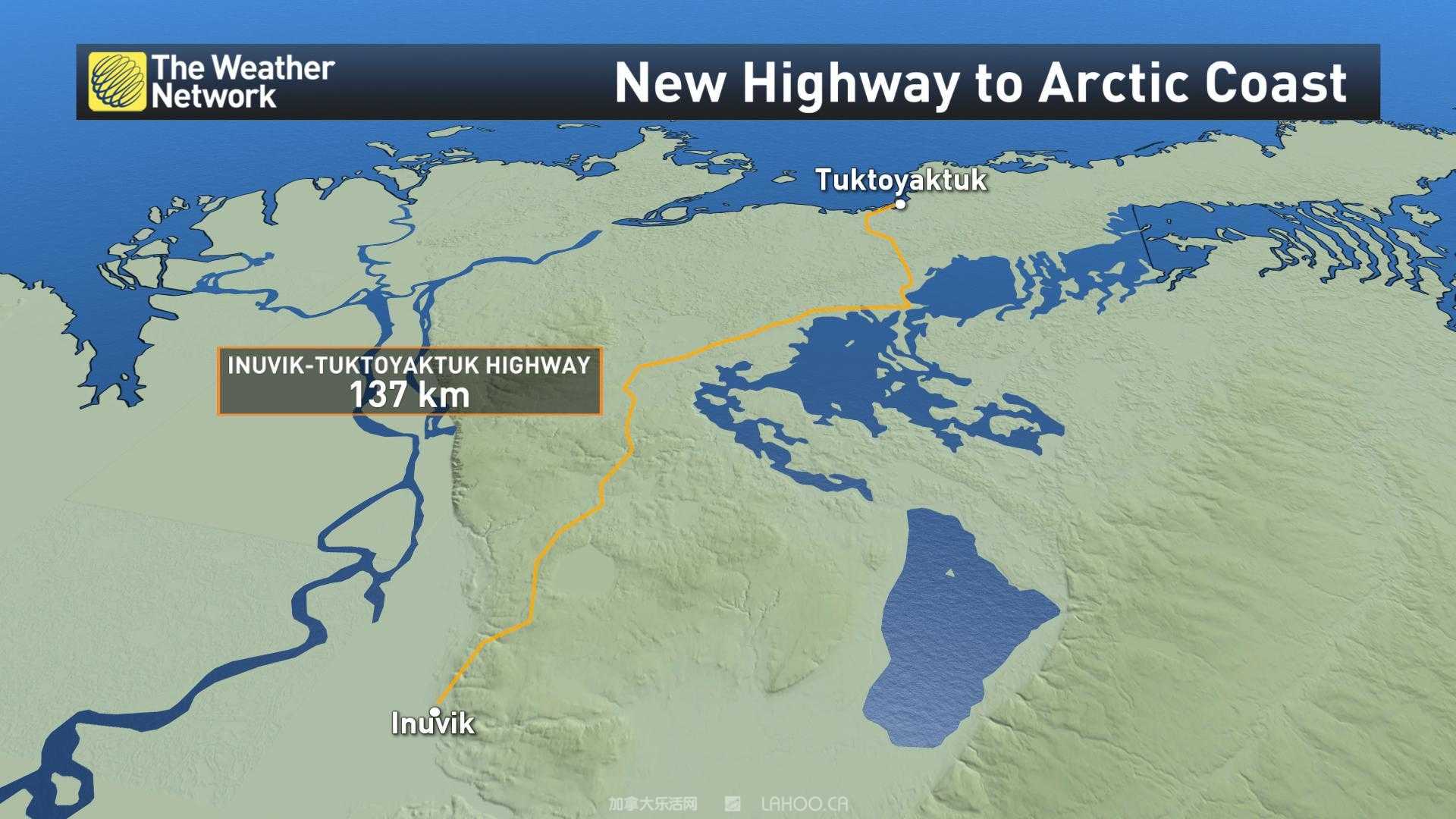 “Inuvik-Tuktoyaktuk”高速公路地图(图片来自网络)