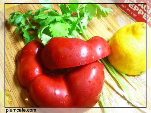 2)用到的主要配料:红椒少许,香菜少许,柠檬汁少许,黑胡椒粉少许。